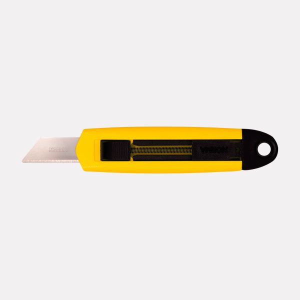 O Estilete de Segurança Retrátil Norma RP14, fabricado em termoplástico, é a nova versão do modelo RP04. Dentre as principais melhorias, destaca-se a função ambidestra, onde destros e canhotos conseguem utilizar o mesmo estilete. O formato ergonômico do estilete RP14 foi pensado cuidadosamente, de forma a se encaixar perfeitamente na mão do operador. Após o término do contato com a superfície de corte, a lâmina se retrai automaticamente, garantindo maior segurança. Possui a Lâmina Trapezoidal Estendida SK85, em aço carbono, com exposição de 4cm, o que possibilita o corte em materiais mais espessos. É recomendado para serviços leves e cortes precisos, como espuma, borracha, papel, papelão e bobinas. É indicado para a indústria e comércio em geral.