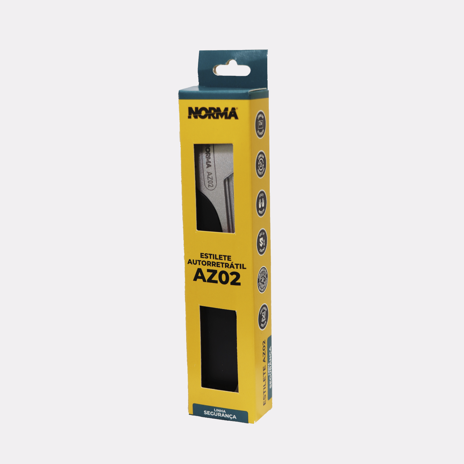 O Estilete de Segurança Autorretrátil Norma AZ02 é fabricado em zamac. Possui empunhadura ergonômica e mecanismo de retração automática, onde mesmo que o operador mantenha o botão acionado, a lâmina se retrai automaticamente ao perder o contato com o objeto de corte. Conta com a Lâmina Trapezoidal SK85, com exposição de 2cm, podendo ser utilizados os dois vértices antes do descarte. É compatível também com Trapezoidal Black e com a Trapezoidal CS100 2N1H. É recomendado para trabalhos pesados e cortes robustos, em materiais como borracha, carpete, couro, papelão e piso vinílico. É indicado para a indústria e empresas de logística.