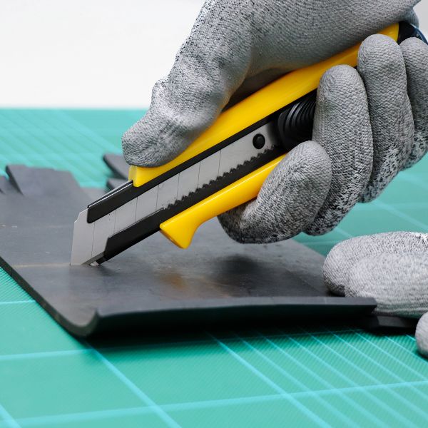 O Estilete profissional Norma L770 é largo e possui empunhadura ergonômica, possibilitando encaixe perfeito na mão. A lâmina 18mm é de aço carbono SK120 com oito segmentos, o que a torna prática e econômica. Possui dois ângulos de afiação, o que permite grande profundidade no corte. Trava automática e guia da lâmina em aço carbono, que pode ser utilizado como chave multifuncional com força de torque de até 2N. Recomendado para trabalhos pesados em materiais como borracha, carpete, couro, filme laminado e piso vinílico. Indicado para indústria e comunicação visual.