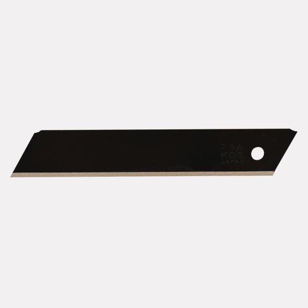 A Lâmina Profissional 18mm KDS Black é uma lâmina sem segmento, fabricada no Japão, em aço carbono JIS G 4401:2009-SK120 (SK2) extra temperado. Possui afiação em dois ângulos, o que otimiza o corte de precisão. É ideal para trabalhos extra pesados, em materiais como borracha, carpete, couro, filme laminado e piso vinílico. É indicada para a indústria