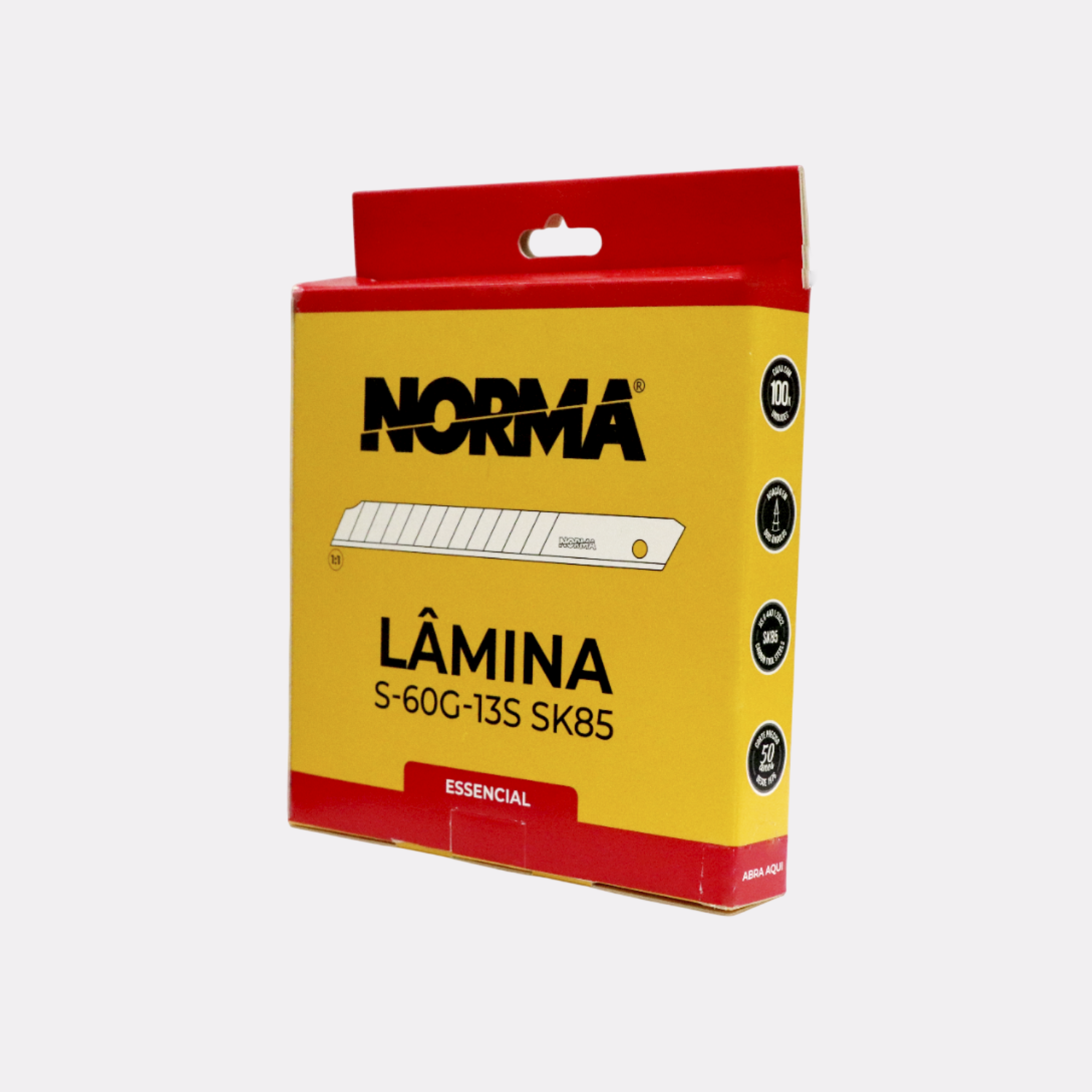 A Lâmina Essencial Norma SK85, conhecida como One Way S, é uma lâmina estreita de 9 mm, com ângulo de 60 graus, segmentada em treze partes. Fabricada na China em aço carbono JIS G 4401:2009-SK85 (SK5), apresenta afiação dupla, garantindo maior precisão nos cortes. Ideal para quem busca praticidade no dia a dia, essa lâmina é recomendada para trabalhos leves e cortes precisos em materiais como papel e plástico. É uma excelente opção para escritórios e empresas de comunicação visual.